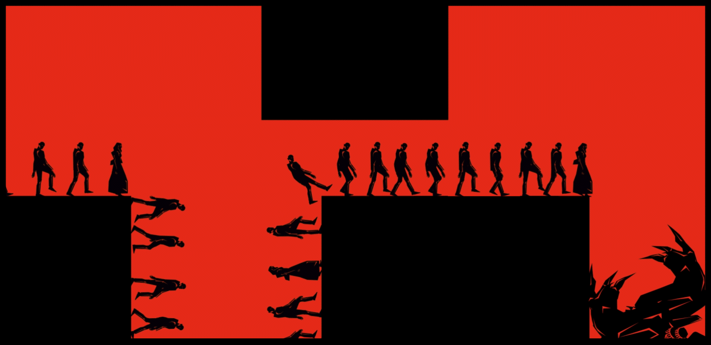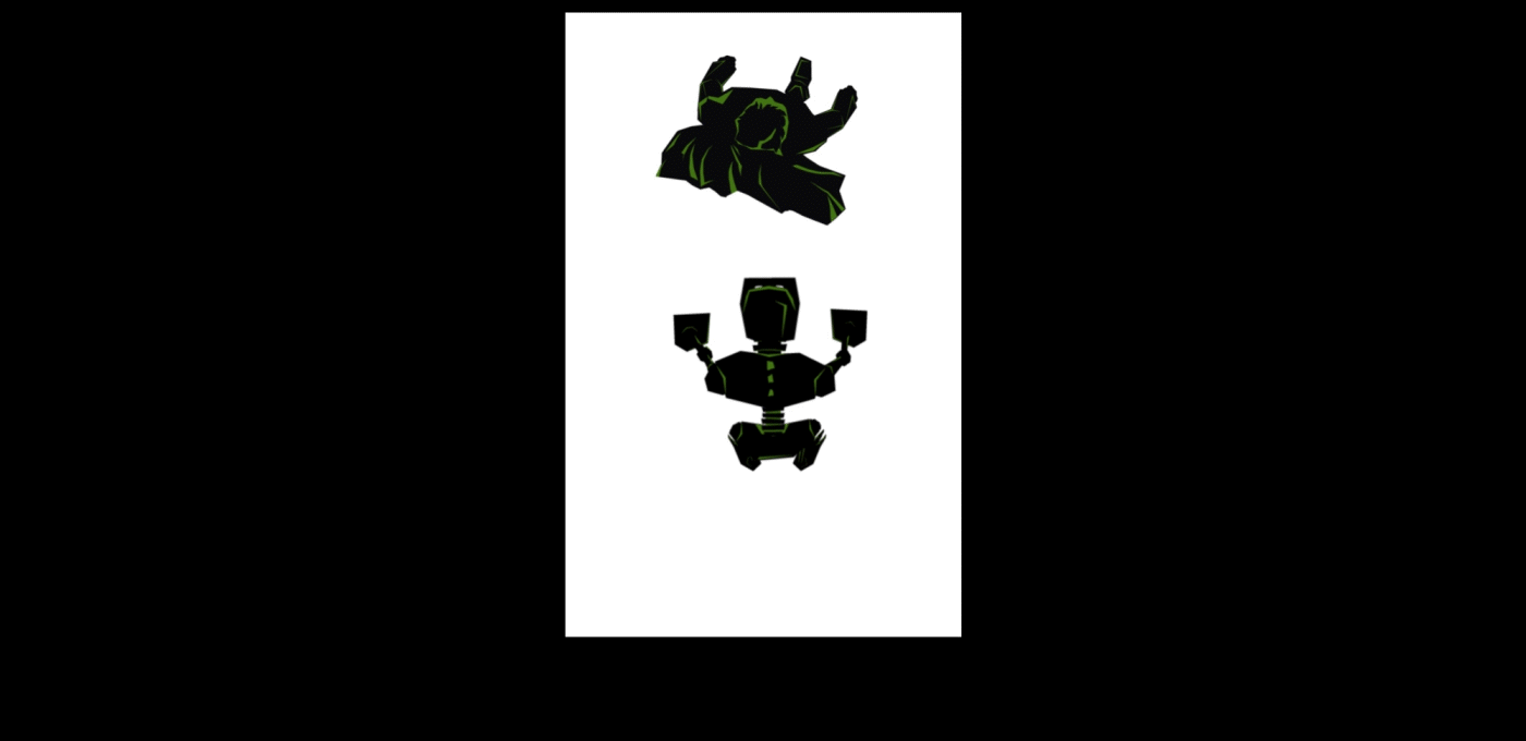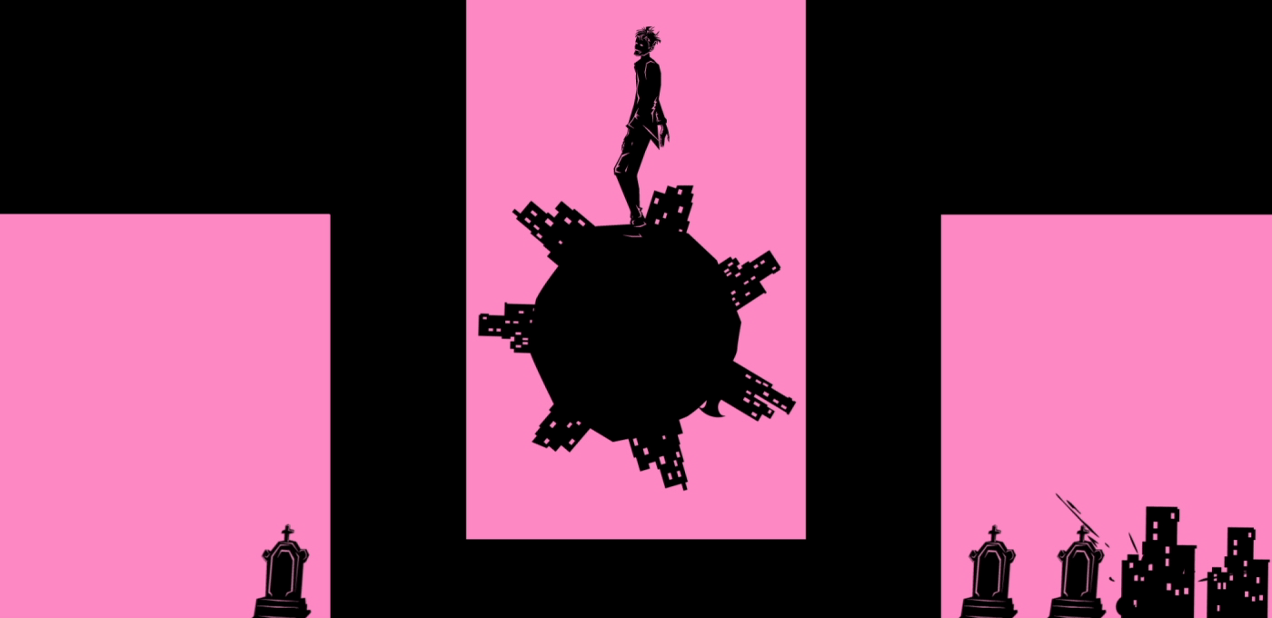 Bohater nie zatrzymuje się. Idzie dalej, mimo wszystko. Graficznie – świat to labirynt z geometrycznych ścian, tylko proste, zawiłe formy. Wszystko to symbol wędrówki i walki o przetrwanie.